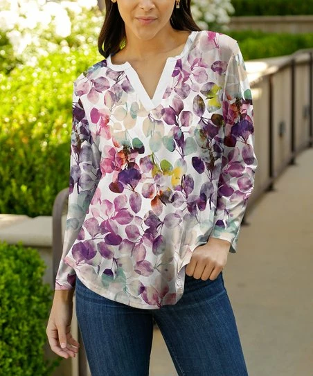 Lily | White & Purple Floral Notch Neck Top – Women & Plus