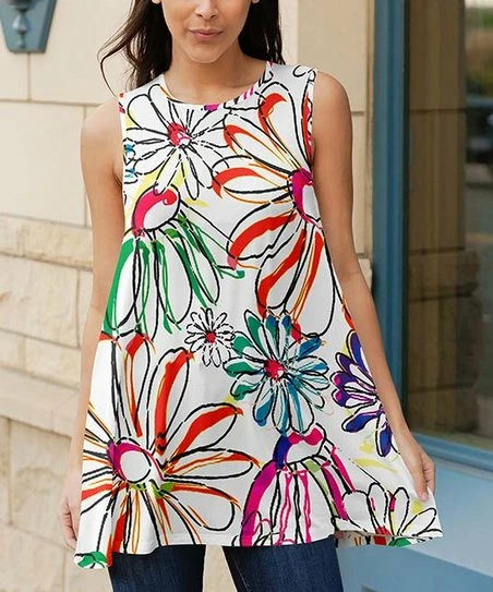 Pair this sleeveless tunic with your favorite pair of leggings to achieve an effortlessly chic, everyday look. Featuring a flowy hem and an eye-catching print for added flair.