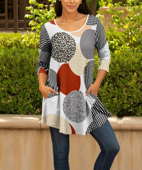 Lily | White & Rust Abstract Dot Pocket Scoop Neck Tunic – Women & Plus