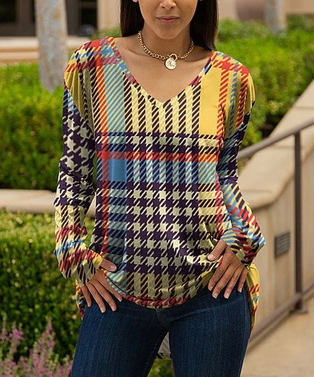 Enjoy this comfortably relaxed tunic featuring stretch-blend material and a bold pattern. Tiered ruffles accent the short sleeves.