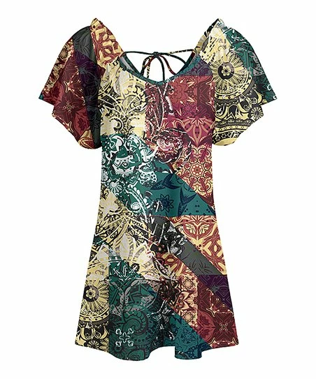 Brighten up your everyday ensembles with this flowy, bold-patterned tunic that boasts a tie-back detail and stretch-imbued fabric for lasting comfort.