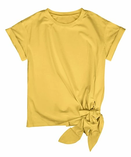 Sunny style comes in the design of this crewneck top that features a bold solid hue and side ties. Cuffed short sleeves help you beat the heat.