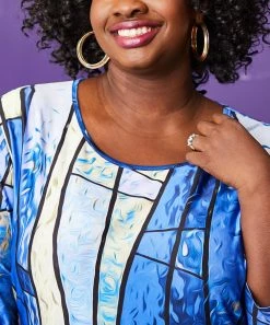 Go for something graceful with this sweetly printed tunic crafted with lightweight, stretch-imbued material and a flattering v-neckline.